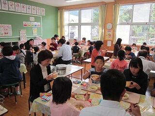 10月2日(火)に鞍岡小学校で町の学校支援室の会がありました。五ヶ瀬町では、事務室の先生方の組織を学校支援室とし、事務の仕事はもちろん、地域と学校をつなぐ大切な役割を担っていただいています。とてもチームワークがよく今日も和やかに会が行われていました。会の後は、わくわくランチで、本校の児童と一緒に給食も食べていただき、子どもたちもとてもうれしそうでした。