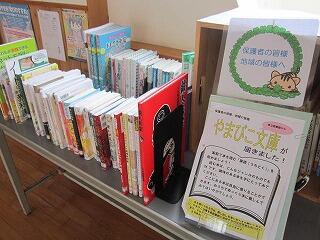 鞍岡小学校の玄関には、県立図書館やまびこ文庫から送られてきた本が並べてあります。子ども向けから大人向けまであり、保護者はもちろん、地域の方にも貸し出しをしています。借りるのは簡単です。職員に一言声をかけていただき、貸し出し簿に記入するだけです。子どもたちと一緒に読書の秋を楽しみませんか。