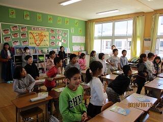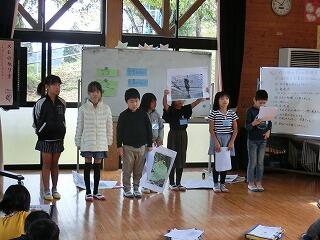 10月17日(水)3年生のG授業が上組小学校で行われました。今回は、「農業が盛んな五ヶ瀬町のひみつをさぐろう」ということで、お世話になった農家さんにもきていただき、各学校で行った農家見学の発表を行いました。その後、各農家さんに質問したいことを訪ねて回り、自分たちが調べた作物と他の学校が調べた作物との共通点などを考えました。稲刈りなどで忙しい中参加してくださった農家の方も、野菜作りにかける熱い思いを語っていただき、子どもたちは、五ヶ瀬の安全でおいしい野菜のひみつがわかったようでした。農業後継者が少なくなっている今、この授業がいろいろな形で実を結んでいくことを期待しています。
