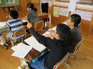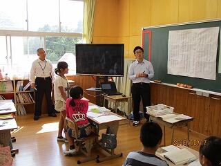 今日の5年G授業は、研究授業でした。子どもたちは27人ですが、24人の先生方に囲まれての授業でした。5年生は、4校の子どもたちが、3つのグループに分かれ、「五ヶ瀬のよさを探す旅」の計画を立てています。今日は、その計画をお互いに発表して練り合っていくというものでした。たくさんの先生方に囲まれながらも自分の考えを出し合い盛り上がっていました。今後は、この計画を実行し、見つけた五ヶ瀬のよさを6年生の修学旅行でPRしていく学習につながっていきます。