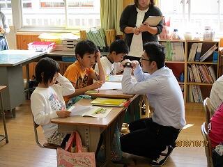 今回は、「ごんぎつね」の学習です。最後の場面、兵十とごんの気持ちの変化を読み取りました。子どもたちは、先生たちにたくさん見られていても緊張することもなく、熱く語り合っていました。