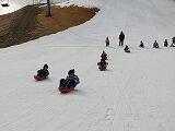 リフトに乗って、スキー場に行き、午前中はそり遊びをしまし