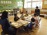 4月18日(木)1年生が入学して6日が経ちました。6人とも毎日元気よく学校生活を送っています。給食の時間には、二人の先生方に見守られながらおいしくいただいています。みんなきちんと食器を持って良い姿勢で食べていました。