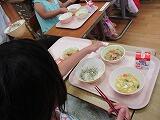 今週の13日(月)から、1・2年生が一緒に、給食を食べ始めました。5月10日(金)までは、それぞれの学年で食べていました。しかし、慣れてきたことと、みんなで楽しく食べたいということから、合同給食を始めました。
