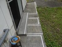 8月29日(木)給食室前の犬走りにペンキでラインを引きました。このラインによって、土足と上履きを区別することができるようになりました。