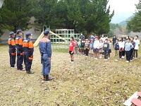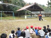 11月26日(火)5時間目に火災の避難訓練を行いました。給食室から火災が発生したという想定で、非常ベルと緊急放送の後、中庭に避難しました。西臼杵広域消防署と鞍岡地区消防団の方々から、避難の仕方についてアドバイスをいただいたり、水消化器での消火体験をさせていただいたりしました。