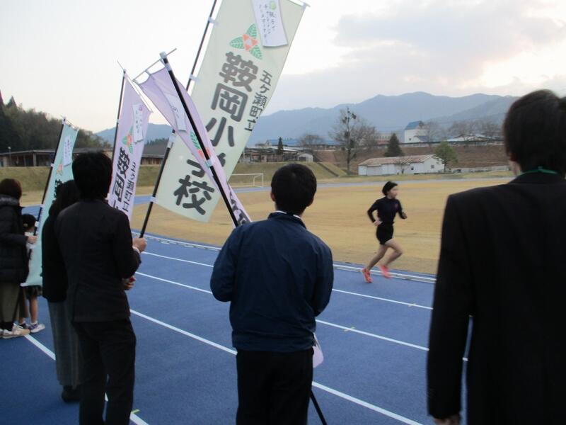 ほとんどの職員が駆けつけ、5本の「のぼり旗」を大きく振りながら、応援しました。