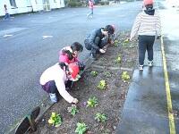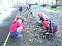 12月23日(月)前の日の雨と気温低下の影響で、正門前のアスファルトが凍結していました。そんな寒い朝でも、子どもたちは元気よくあいさつし、花壇の世話やボランティア活動に励んでしました。