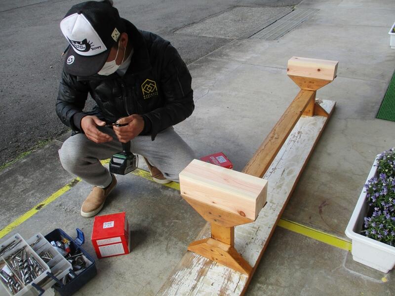 3月17日(火)相撲場の補修工事が始まりました。13日(金)には、柱2本が補強されました。今後屋根も新たに塗り直される予定です。