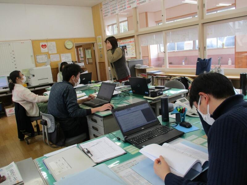 3月4日(木) 職員は子どもが登校しなくても、次のように勤務しています。8:00から15分間掃除をした後は、職員朝会、期末整理、授業の資料及び宿題プリント作成、保護者や関係機関へ電話、会議、・・・。16:30まで勤務しております。いつ、学校が再開されてもいいように、準備しているのです。