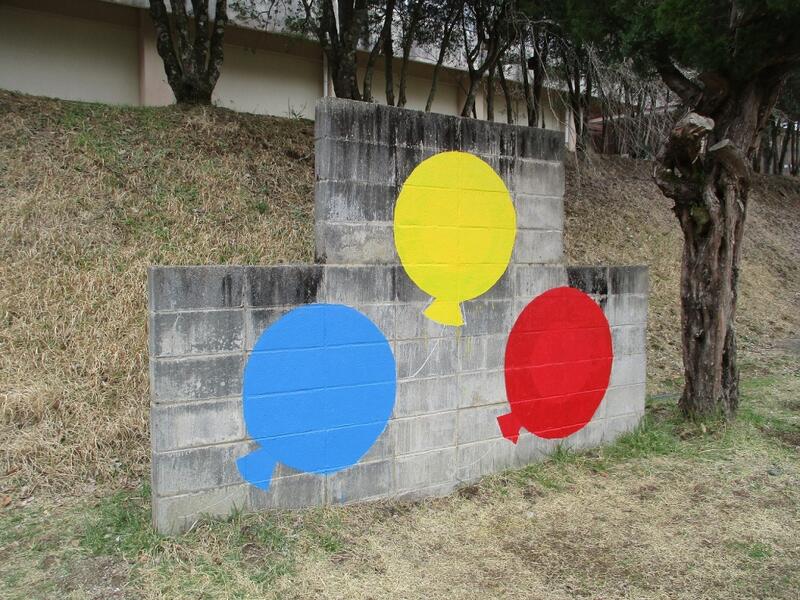 「的当て」は、風船をモチーフに3色で描きました。「きれいな鞍岡小学校」をめざして、取り組んでいます。あとは、すもう場の改修(業者)です。どんどん教育環境が整ってきます。