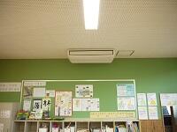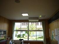 今月中旬から下旬にかけて、空調設備設置工事が行われました。今回の工事によって、新たに校長室、特別支援学級、給食室にエアコンが設置されました。