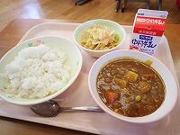 食事をする時には、食器の置き方が決まっています。これは給食でも同じです。さて、みなさんは正しく置くことができますか?今日の給食で確認してみましょう。主食の麦ごはんは手前の左側、カレーは手前の右側、サラダは奥の真ん中、牛乳は奥の右側になります。スプーンは一番手前におかれていますか?献立によって変わる場合もありますので、その日の給食の献立を確認しながら正しく置けるようになるといいですね。