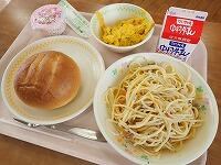 米粉パン 牛乳 スパゲティ パンプキンサラダ お祝いデザート