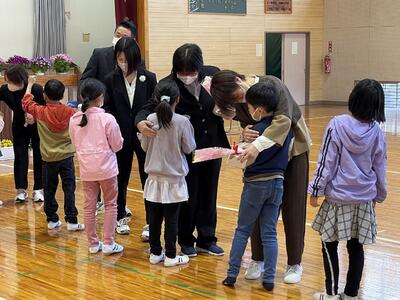 6名の先生方が鞍岡小学校を旅立たれ、子どもたちとの最後のお別れをしました。