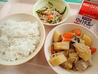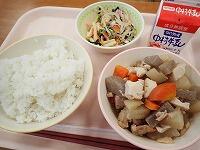 麦ごはん 牛乳 のっぺい汁 大豆の礒煮 いちご