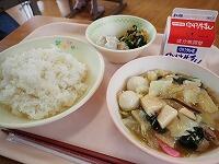 麦ごはん 牛乳 中華丼の具 ポークシューマイ ゆで野菜