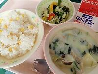 コーンバターライス 牛乳 クリームシチュー じゃこサラダ