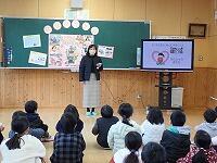 スペシャルゲストに、三ヶ所小学校から栄養教諭の吉田由起子先生と本校調理員の興梠裕樹先生にきていただき、特別活動室で給食感謝集会を行いました。保健給食委員会の児童が考えた給食に関するクイズや調理員の興梠裕樹先生へのインタビュー、栄養教諭の吉田由起子先生からは「よく噛んで食べることの大切さ」についてお話ししていただきました。