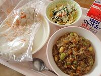 カレーが日本に登場したのは、明治時代の初めになります。日本のカレーがインドのカレーよりとろみが強くなっているのは、海軍カレーのメニューに採用されたとき、船の揺れに対応するためだったそうです。今日は、根菜と大豆の入ったキーマカレーです。キーマとは「きざむ」という意味です。肉もひき肉を使い、材料も小さくきざんでいます。大豆も入れると栄養満点、「朝大豆」で朝から食べたくなるカレーですね。
