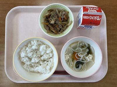 麦ごはん もずくスープ 唐揚げ ゆで野菜 お祝いデザート