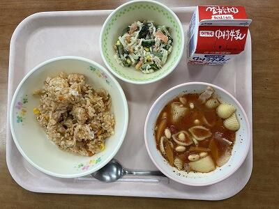 チキンライス ミネストローネ 千切り大根とツナのサラダ