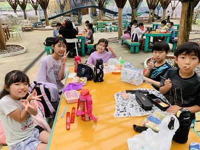 春の遠足では、バスに乗って「阿蘇ファームランド」に行きました。「阿蘇元気の森」で様々なアトラクションにチャレンジ。おいしいお弁当とおやつでおなかもいっぱい。帰りのバスでは夢の中へ・・・。全員参加で楽しい思い出ができました。