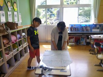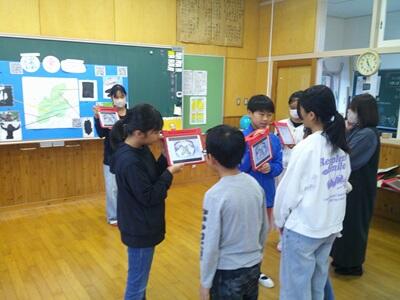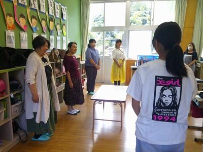 10月31日(金)町内にある事業所「NicoRon」の皆さん手作りのぞうきんを寄贈していただきました。代表して1年生が受け取り、「ありがとうございます。おそうじがんばります。」と一人一人がお礼の言葉を伝えてくれました。