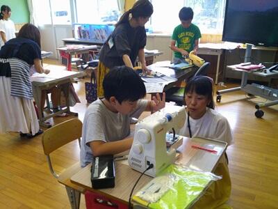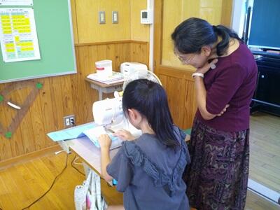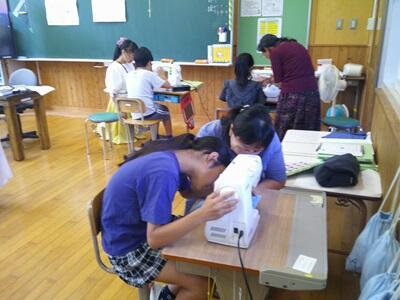 10月2日(木)5・6年生の家庭科でミシンを使った学習をしています。この日は、外部講師として4名の地域の方にお越しいただきました。