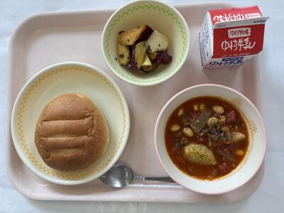 麦ごはん じゃが芋スープ ドライカレー 牛乳