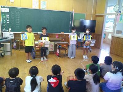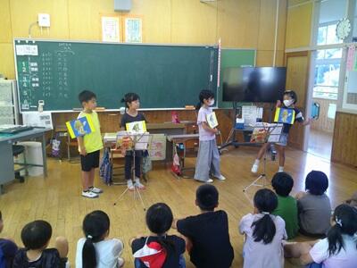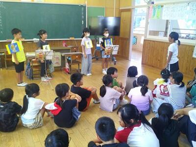 10月16日(木)昼休みに2年生が国語科で学習した「お手紙」の音読発表会を開いてくれました。当日朝、2年生が学級を回って呼びかけたところ、多くの子どもたちや先生方が観覧してくれました。4人とも上手に音読できました。発表後には、他の学年の子どもたちから感想やアドバイスをもらいました。