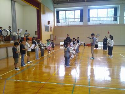 10月21日(火)五ヶ瀬中等教育学校から講師の先生を招いての練習でした。26日(日)の町ふくしまつり、28日(火)の町教育文化祭で鼓笛演奏を発表します。町教育文化祭では、町内の小学生との合唱もあるので、鼓笛演奏と合わせて指導していただきました。