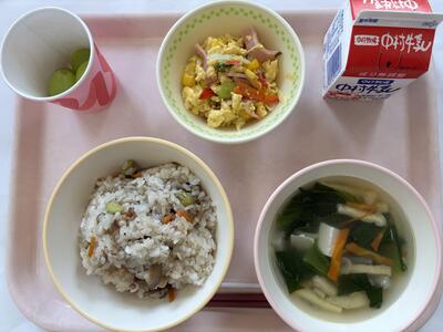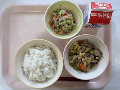 さつま芋ごはん なめこのみそ汁 大豆に磯煮 牛乳