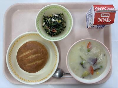 米粉パン 味のシチュー ひじきのマヨネーズ和え 牛乳