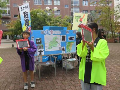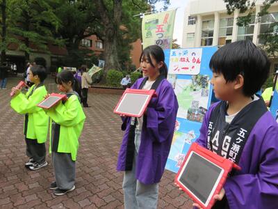 10月22日(水)5・6年生がPR活動に向けての練習を行いました。PR活動とは、今月24日に熊本学園大学において、五ヶ瀬町の魅力をPRする活動のことです。自分から積極的に声をかけ、集まってくれた人たちに向けて元気よく五ヶ瀬町の魅力をPRできました。