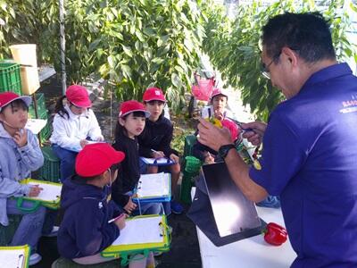 10月29日(水)3・4年生がパプリカ農家を見学しました。1学期からずっとお世話になっている農家の方に、パプリカ栽培に関する質問をしたり、選別や箱詰めなどの集荷の仕方を教えていただいたりしました。