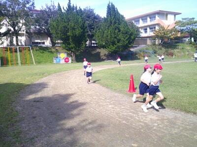 10月30日(木)モジュールの時間に持久走練習を行いました。今日は、5・6年生がG授業でいなかったので、1~4年生での練習でした。短なわを使ってのなわとび練習の後、5分間の持久走を行いました。11月21日(金)の持久走大会に向けて頑張っています。