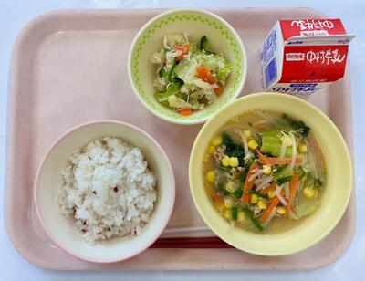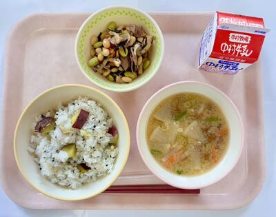 さつま芋ごはん なめこのみそ汁 大豆に磯煮 牛乳