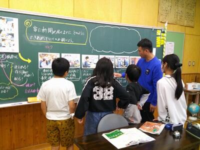 11月27日(木)5時間目に相互参観授業が行われました。今回は、5年社会科「情報化した社会と産業の発展」の学習でした。新聞記者が集めた情報をどのように選択・加工・整理して伝えているかを熱心に調べ、みんなでまとめることができました。