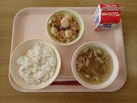 麦ごはん 牛乳 沢煮椀 里芋のそぼろ煮