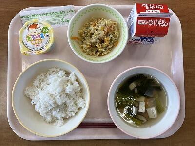 麦ごはん つみれ汁 千切り大根の卵とじ 豆乳プリン