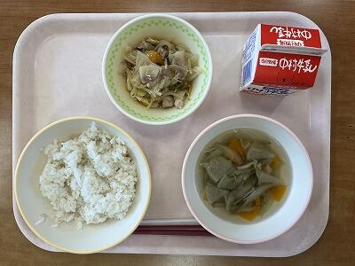 麦ごはん 沢煮椀 豚肉のしょうが炒め