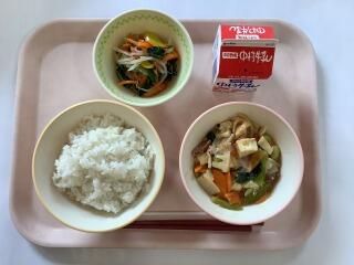 麦ごはん 厚揚げの中華煮 ナムル 牛乳
