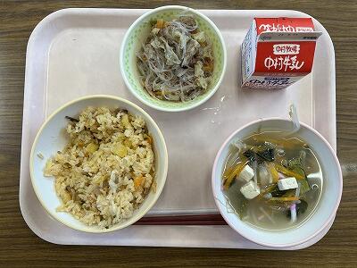 今日はキムたくごはんです。なぜ「キムたく」と言うのでしょう。それは「キムチ」と「たくあん」が入っているからです。このキムたくご飯は長野県塩尻市の学校給食で生まれた人気のメニューです。テレビでも紹介されて全国各地で食べられるようになりました。日本の伝統的な保存食の一つである漬けものを食べなくなった子どもたちに、漬けものを食べてもらいたいと思って考えられたメニューです。