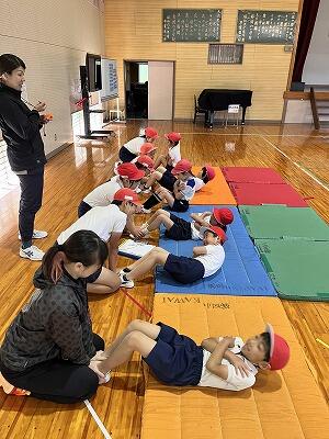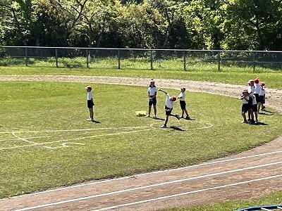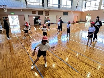 1年生から6年生まででグループを作り、それぞれの種目にチャレンジ。「すごいよ!」「あきらめないで~」と、下学年の子どもたちに声を掛ける上学年の姿が見られました。