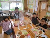 5月12日(水)本年度初めてのバースディ給食を行いました。今回は4月生まれの1回目でした。パーテーションを使用した上で、校長室で楽しい給食の時間を過ごしました。