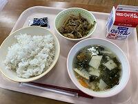 麦ごはん 牛乳 吉野汁 いりこ入りみそきんぴら 給食のり