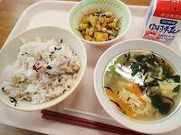 たこごはん 牛乳 ひじきスープ 大豆と小魚の揚げ煮
