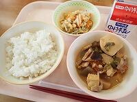 麦ごはん 牛乳 鶏肉と里芋のみそ煮 まだか漬け