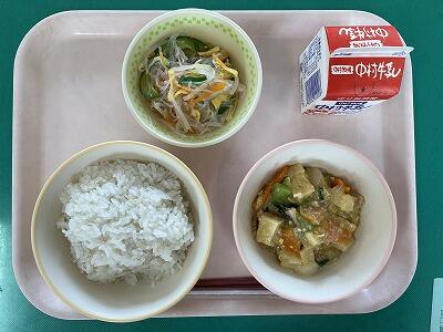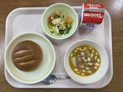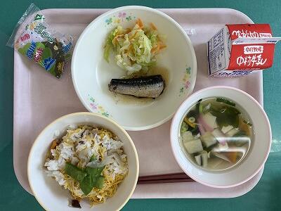 5月5日はこどもの日です。今日はこどもの日の行事食です。さて、わかたけ汁の中には何が入っているでしょう。いろいろなものが入っていますが、欠かせないものは「わかめ」と「たけのこ」です。「わかめ」と「たけのこ」が入っているので「わかたけ汁」と言います。たけのこは成長が早く、10日もすると竹になってしまいます。みなさんに筍のようにすくすくと成長してもらいたいという願いをこめて今日の給食に出ています。
